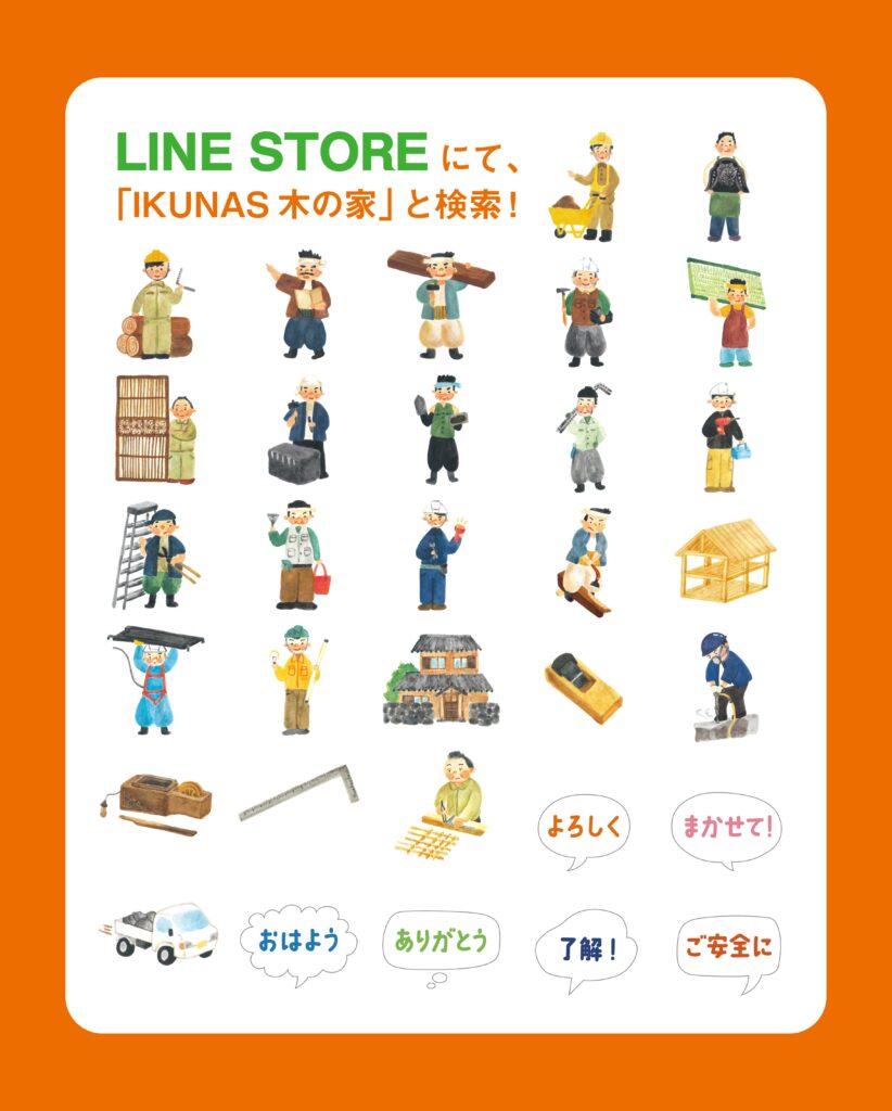 IKUNAS 木の家をつくる職人さんLINEスタンプ!