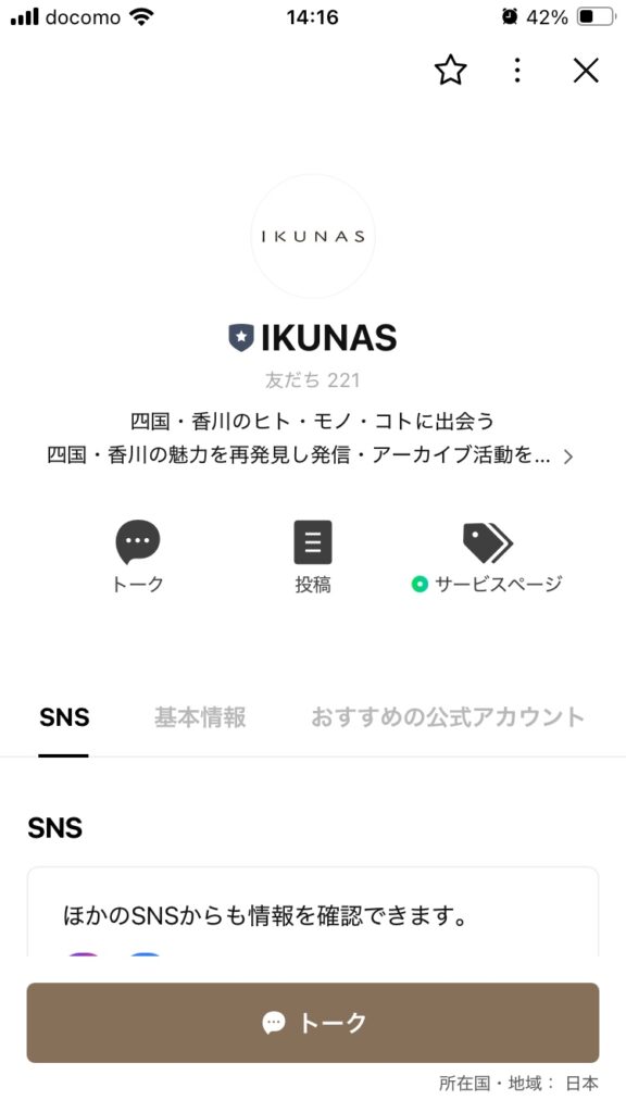 - 「IKUNAS」を友だちに追加