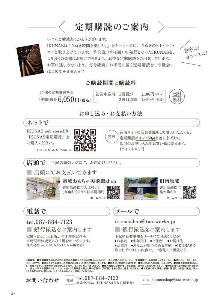 讃岐のことがギュッと詰まった一冊になりました。IKUNASとともに、「さぬき時間」をお楽しみください。