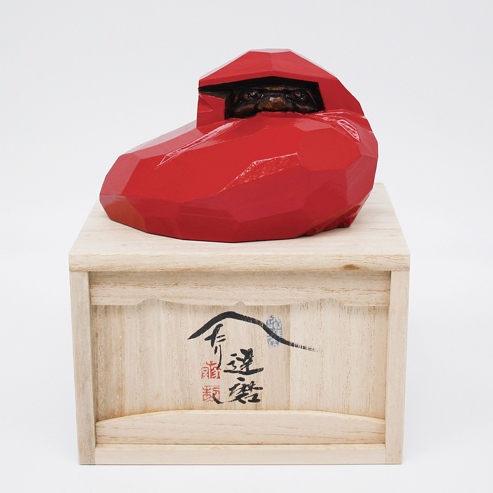 ヘタリだるまは、一刀彫の特徴である刀痕の美しさを存分に味わえる逸品。脈々と受け継がれた伝統の技が創り出す現代的で軽妙なフォルムをお楽しみください。